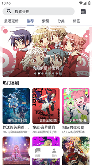 在本站下载AniCh动漫追番软件,安装完成后打开软件,看到首页的推荐内容。