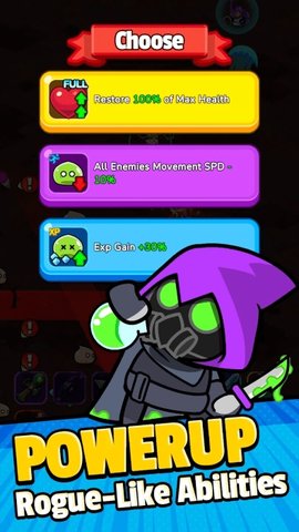 在战斗中,使用轮盘控制角色的移动,灵活躲避怪物的攻击,收集经验值以便升级。升级后可以选择天赋技能,进一步增强角色的能力。