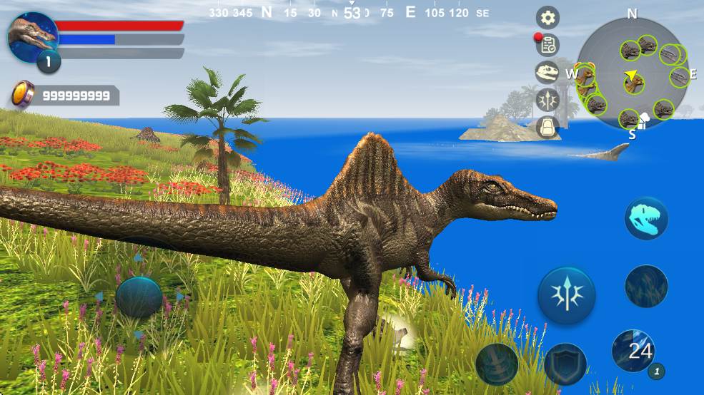 棘龙模拟器3D是一款以侏罗纪恐龙时代为背景的生存模拟类手游,将化身为一只棘龙,在广阔的原始世界中探索和生存。棘龙模拟器手机版为了更好地适应环境,需要捕食比自己小的恐龙,以此来提升自身的技能和解锁更多的奖励。在游戏的后期,还可以通过强化自身能力和更换各种皮肤,进一步提升游戏体验。对于喜欢恐龙和生存挑战的而言,作品无疑是一个引人入胜的选择。