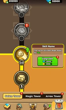 炮塔合并升级,解锁专属技能