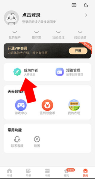 2、在“我的”界面点击“成为作者”