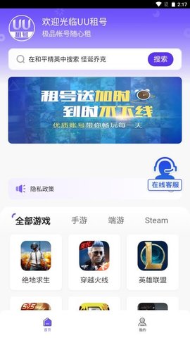 UU租号是一款专注于提供游戏账号租赁服务的在线平台,为们带来安全、便捷且具高性价比的账号交易体验。涵盖了众多热门的端游与手游,如绝地求生、王者荣耀、光遇、蛋仔派对、英雄联盟和火影忍者等,汇集了丰富的账号资源,能够精准匹配的需求与喜好。用户在此可以轻松查看账号的租赁价格、游戏等级、角色配置及道具皮肤等详细信息,以便进行高效的筛选与比较,快速找到心仪的账号。