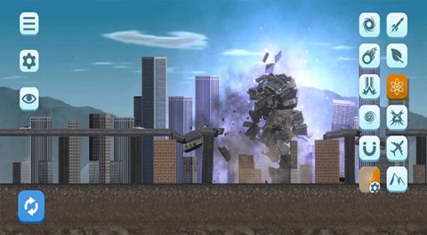 接下来,可以选择不同的场景,第三个场景,点击下方的灾难选项,随意选择城市的某个角落进行破坏,享受摧毁的快感。