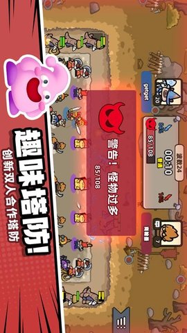 游戏支持双人挑战,可以邀请好友共同参与,双方通过协商选择合适的塔防部署方式,携手完成攻城与防御的任务,增强游戏的趣味性和互动性。