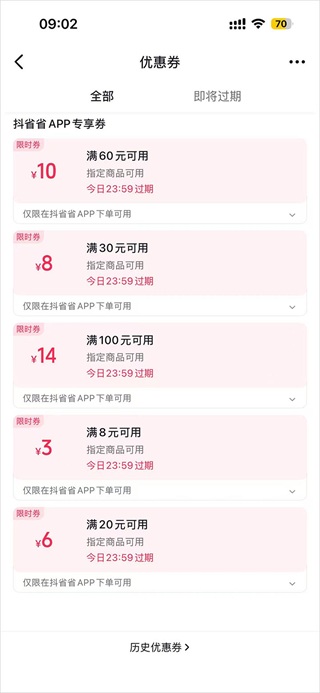 3、即可查看所有已领取的优惠券。切记查看优惠券的有效时间,确保及时使用!