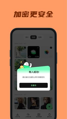 云端同步:支持将备份的图片和视频进行云端同步,方便随时找回资料。