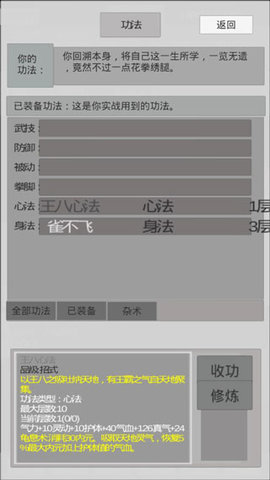 随着游戏的深入,需要不断吸收灵根,并练习领悟功法,装备心法以实现吐纳和疗伤,从而提升自身实力,迎接更高的境界挑战。
