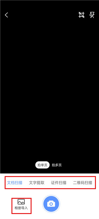 具备文档扫描、文字提取、证件扫描、二维码扫描等功能,如图所示。