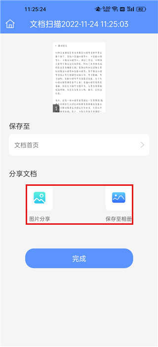 文档扫描完成后,既可以保存至相册,也可以分享给朋友。