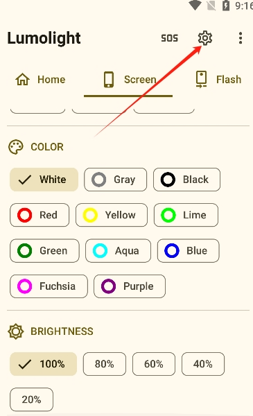 在首页选择屏幕照明、两者或闪光效果,点击对应的开关即可开启照明。