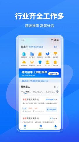 多领域订单发布:涵盖建筑工、维修工、电工、司机等多种工种,满足不同用户需求。