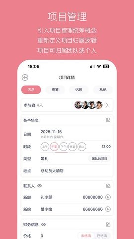 提供了强大的档期管理功能,根据不同项目的需求,科学安排婚礼、寿宴、宝宝宴等各类活动的时间,确保每个环节的顺利进行。