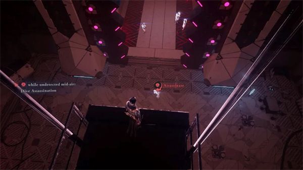 如果敌人正在注意你的周边,但没有发现你,你会在他们的头顶看到一个黄色指示器。如果它变成红色,就表示你被发现了,暗杀将不可用。