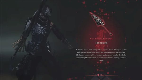 随着游戏进程推进,你会发现新的武器。例如,第4章中的Yatousen,它既可以当作细剑使用,也可以当作长矛使用,具体取决于你的操作方式。