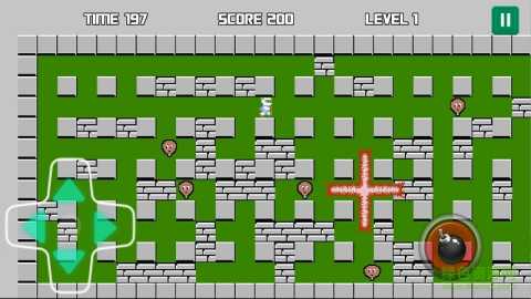 操作简单易上手:采用虚拟按键操作,左边控制移动,右边放置炸弹,操作方式直观明了,与手柄操作相似,即使是初次接触的玩家也能快速上手,轻松享受游戏乐趣。