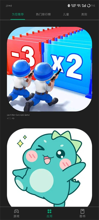 1、进入主页后可以看到推荐的游戏或者软件类型;