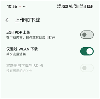 Android 可开启 “新书籍下载至 SD 卡”(SD 卡需为内部 / 便携存储)