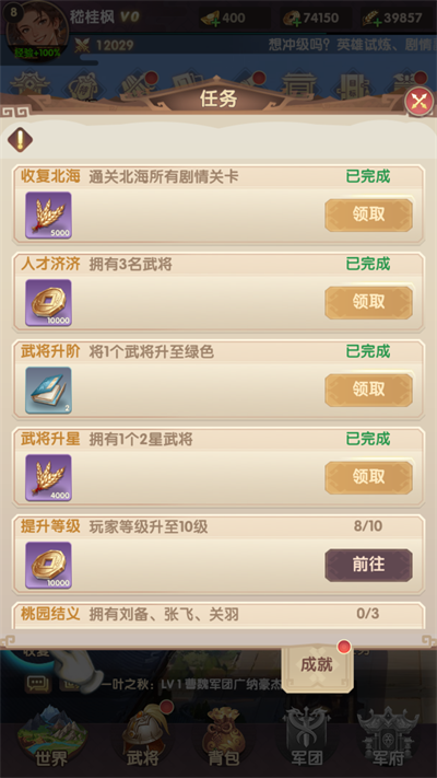 等级到达15级之后将开启军团,加入军团即可参与世界地图中的城池争夺,一统天下指日可待。