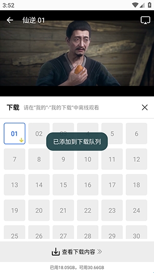 在播放界面,找到下载选项,点击后选择想要下载的内容,等待软件将其添加至下载列表,下载完成后可在下载管理中查看。