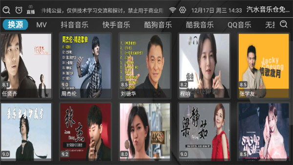 2、进入到首页以后可以看到很多的音乐资源类型,抖音音乐、快手音乐以及酷狗音乐等