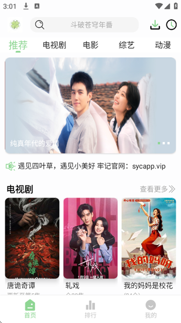 在本站下载四叶草影视软件后,安装并打开,进入首页时,你会看到推荐的影视剧,可以直接选择观看。