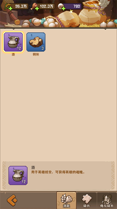 2、养成资源:丰收宝箱、强化石、碎片、装备材料。