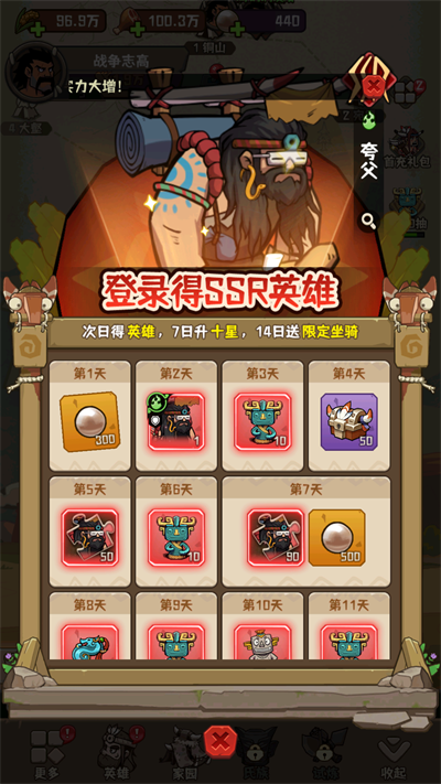 参与部落战争,万人同屏攻城,赢取丰厚奖励。
