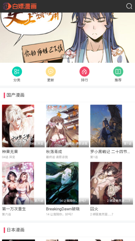在本站下载白嫖漫画,完成安装后打开软件,进入主页。