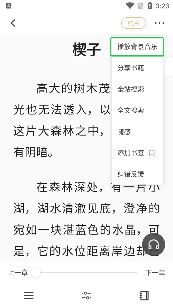 4、随后就可以安安静静看了,如果你觉得枯燥,软件支持阅读播放背景音乐