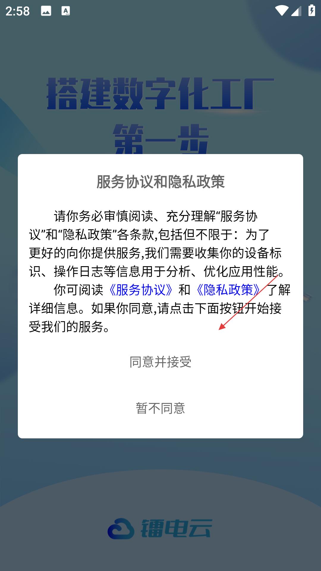 在本站下载镭电云MES生产管理,安装完成后首次启动软件时,用户需要仔细阅读并同意用户协议和隐私政策条款。