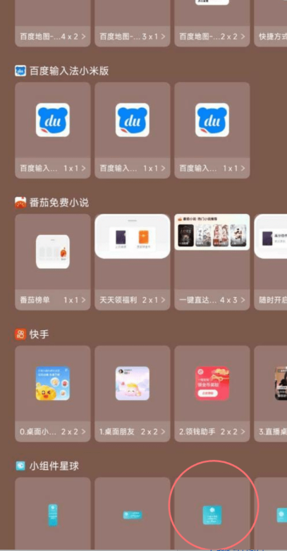 4、在列表中找到“小组件星球”,选择你想要的组件尺寸,点击即可将它添加到桌面上。