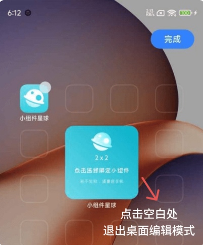 5、把刚添加的组件拖放到合适位置后,点击桌面空白区域或“完成”按钮,退出编辑模式。