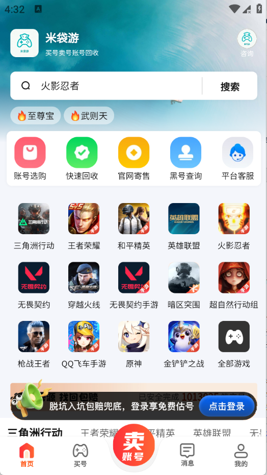 在米袋游上进行账号交易非常简单,用户只需下载软件并注册账号,浏览或搜索想要的账号。