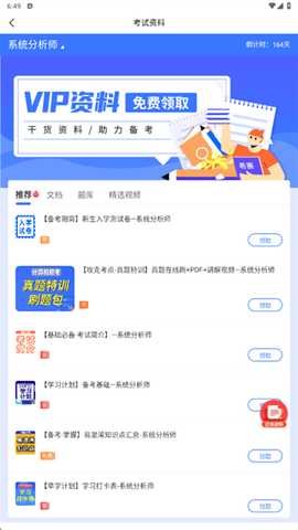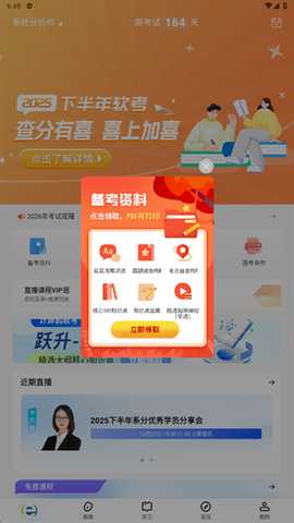以选择系统分析师考试为例,选定后进入软件首页,就能收到免费的备考资料,点击“立即领取”。