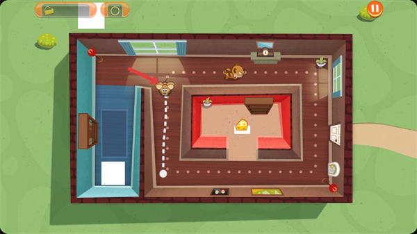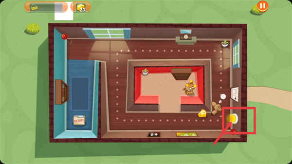 3、避开巡逻中的猫咪,前往目标区域,将场景中的所有“奶酪”道具收集齐全。