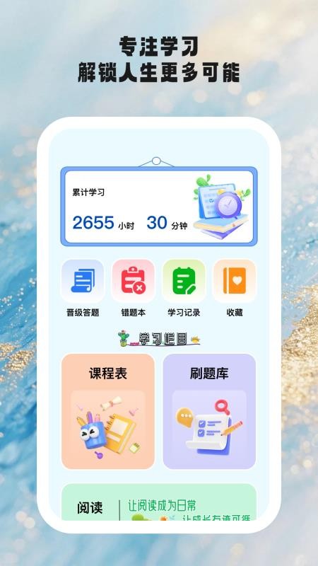 时光学伴是一款功能全面的学习工具,能够满足不同学习者的需求。无论是阅读还是刷题,都能提供良好的支持,帮助用户高效提升学习效果,值得一试。