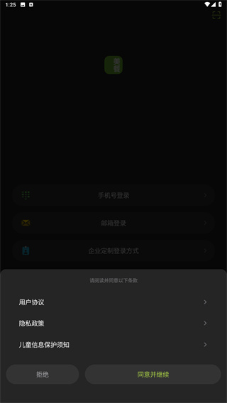 3、若选择手机号登录,需点击“同意并继续”确认用户协议相关条款;