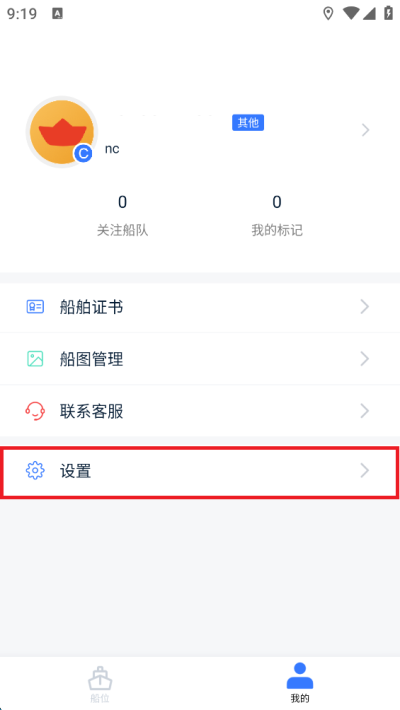 想要让船讯网App自动更新船舶位置,需要先进入个人中心。打开应用后点击底部导航栏最右边的我的,然后进入设置页面。