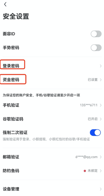 2.点击【登录密码】或【资金密码】,按照页面提示修改即可。
