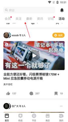 首页:查看最新资讯,还能浏览所关注用户的最新动态。