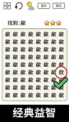 2、细致的观察体验:玩家在找字的过程中,需要仔细观察字的细节,提升了游戏的趣味性和挑战性。