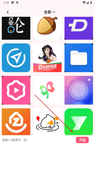 2. 勾选需要拼接的图片,然后点击“开始”进入编辑页面。