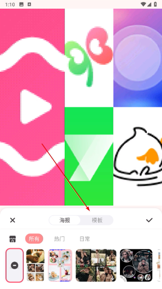 3. 点击下方的“模版”选项,进入模板选择区域。