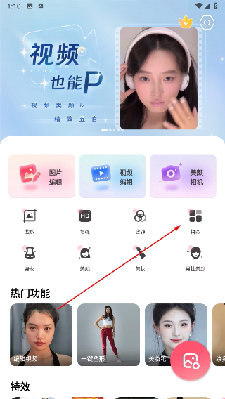 1. 启动美啦相机,点击“拼图”功能进入图片选择界面。