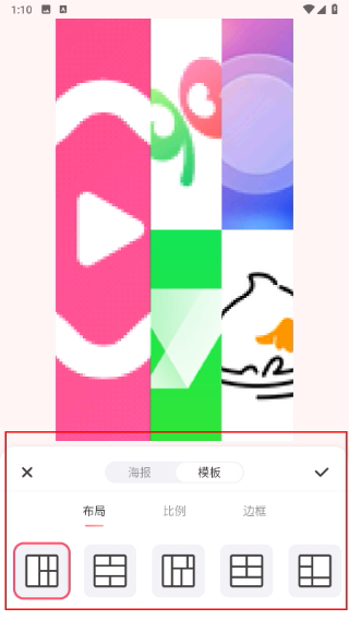 4. 挑选合适的布局比例,点击对勾图标即可完成拼接。