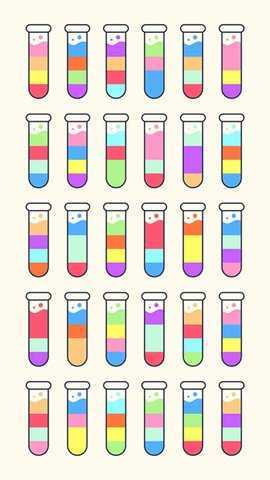 1、简单易懂的游戏规则:欢乐水杯的玩法非常简单,玩家只需将相同颜色的水倒入同一水管,适合各个年龄段的玩家。