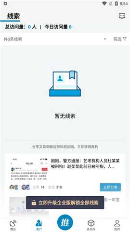 4、在线索中你可以分享文章到朋友圈等,以此获得商机;