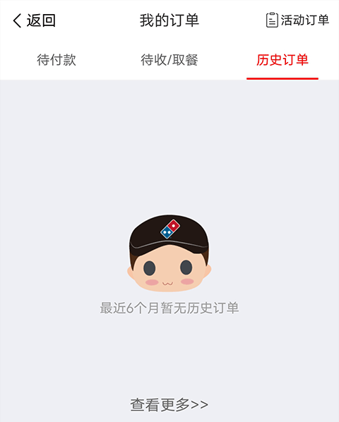 1、打开达美乐披萨App,进入首页后,点击“我的订单/发票”选项。
