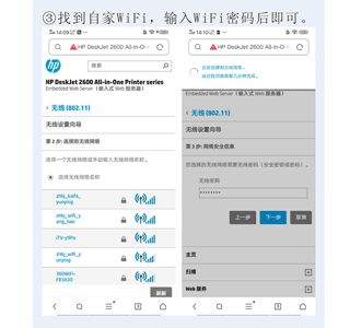 2、如果您的打印机是刚出厂没有经过任何配置的话,可以打开手机WiFi,找到并连接打印机WiFi( WiFi 名一般为打印机型号, WiFi 密码请看打印机说明书)。如下图