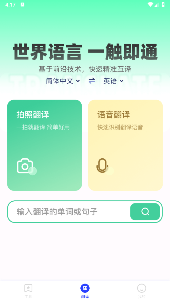 拍照翻译:通过拍照直接翻译图片中的文字,适合旅游和学习外语的场合。